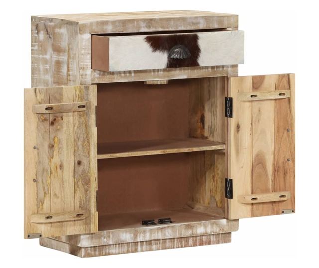 Ormarić je izrađen od punog drveta manga, tvrdog drveta s gustim zrnom. Neobrađeno drvo manga otporno je ne samo na težinu, već i na trošenje s vremenom. Stoga je ovaj lijepo dizajnirani ormarić izuzetno stabilan, izdržljiv i estetski privlačan. Zbog prekrasnog zrna drveta, svaki komad namještaja je jedinstven i malo drugačiji od ostalih. Ova komoda ima 2 ladice i 2 ormarića s 2 vrata, pružajući obilje prostora za pohranu cipela, knjiga, kao i drugih raznih predmeta.