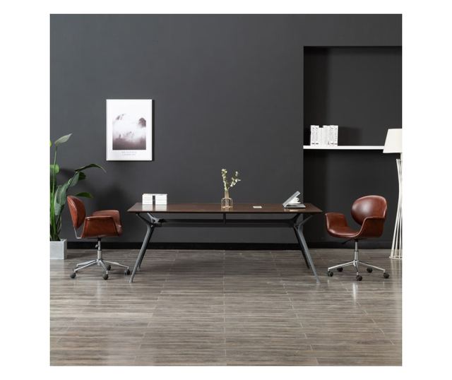 Okretni kuhinjski stolac, smeđi, ekološka koža