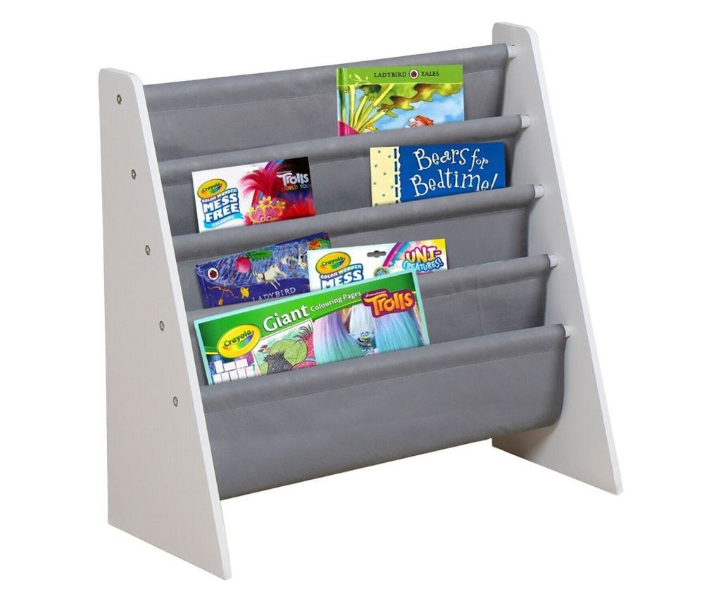 Ova siva i bijela polica za knjige odličan je način za djecu da organiziraju svoje knjige. Platnene police štite knjige od oštećenja, a tu je i prostor za pohranu drugih predmeta. Čvrsti drveni okvir osigurava trajnost. Ova polica ima 4 odjeljka i može držati do 25 knjiga. Veličina je prilagođena djeci kako bi mogla dohvatiti svoje omiljene knjige i potiče samostalan razvoj. Platneni odjeljci i MDF baza osiguravaju stabilnost. Željezna cijev na dnu dodaje dodatnu potporu. Uklapa se u svaki ambijent i ima zaobljene kutove radi sigurnosti. Testirano prema europskim standardima. Jednostavna instalacija u spavaćoj sobi, dječjoj sobi ili dnevnom boravku. Čvrsta i lagana, lako se premješta. Odličan poklon za dječake i djevojčice. Pogodno za dnevni boravak, dječju sobu, spavaću sobu, hodnik, radnu sobu, dječje centre i vrtove. Za djecu stariju od 3 godine. Dimenzije: 62,7x28x60 cm. Maks. opterećenje: 3 kg po platnenoj polici. Težina: 3,5 kg.
