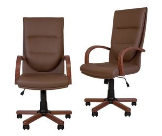 Set od 2 direktorska stolca EXONIA EXTRA, drveni nasloni za ruke, umjetna koža, tamno smeđa