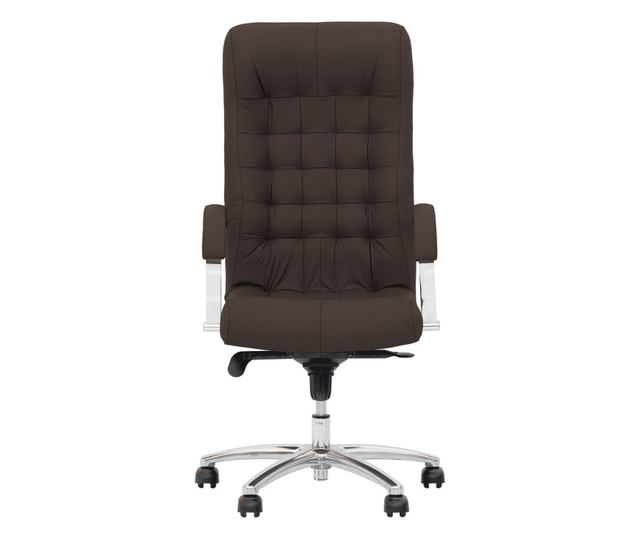 Direktorska stolica THRONES je udobna stolica s sjedištem i naslonom presvučenim prirodnom Split kožom. Stolica je opremljena Multiblock mehanizmom koji omogućuje slobodno ljuljanje i nudi mogućnost fiksiranja sjedišta i naslona u četiri položaja. Funkcija Anti-Shock ima za cilj spriječiti osobu od efekta pada unatrag ili udarca u naslon prilikom otključavanja mehanizma. Stolica je opremljena rukonaslonima presvučenim kožom i sjajnom aluminijskom zvjezdastom bazom.