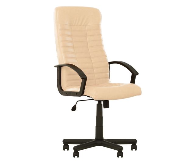 "Direktorska stolica HERMAN ima udobno sjedalo i naslon, s originalnim krojem. Stolica je opremljena mehanizmom za ljuljanje koji omogućuje korisniku opuštajuće ljuljanje, fiksiranje razine nagiba sjedala i naslona u određenom položaju, kao i podešavanje razine napora za ljuljanje sjedala i naslona, ovisno o težini osobe. Fiksni nasloni za ruke stolice izrađeni su od crne plastike. Stolica ima metalnu bazu u obliku zvijezde, potpuno prekrivena plastikom.
