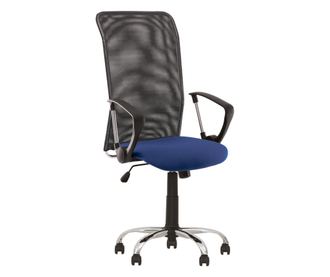 "Uredska stolica ZAPATA predstavlja savršeno rješenje za organizaciju radnih mjesta u kontekstu modernih ureda. Stolica ima visoki naslon izrađen od elastične mreže koja 'diše'. Sjedalo je udobno, profilirano, podesivo po visini. Stolica je opremljena mehanizmom 'Synhro-light' koji omogućuje slobodno ljuljanje, sa sinkroniziranim nagibom naslona i sjedala u omjeru 2:1; podešavanje razine napora za nagib; fiksiranje naslona u uspravnom položaju. Podešavanje mehanizma i pneumatskog cilindra ostvaruje se pomoću iste ručke. Nasloni stolice su od plastike. Zvjezdasta baza je kromirana metalna.