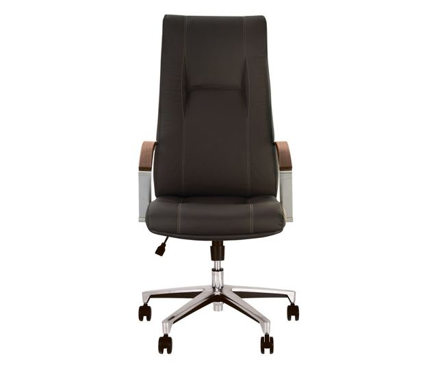 Stolac KINS kombinira udobnost i moderni vanjski izgled. Stolac ima široko, udobno sjedalo i ergonomski oblikovanu leđa s bočnim osloncima i originalnom dekorativnom šavom. Stolac je opremljen mehanizmom za ljuljanje koji korisniku omogućuje opuštajuće ljuljanje, fiksiranje nagiba sjedala i leđa u određenom položaju, kao i podešavanje razine napora za ljuljanje sjedala i leđa, ovisno o težini osobe. Metalne ruke su djelomično obložene drvom. Osnova u obliku zvijezde je od sjajnog aluminija.