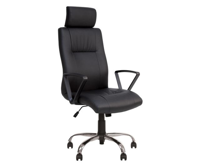 "Direktorska stolica AZIMUT ima profilirani ergonomski naslon, opremljen udobnim naslonom za glavu i profilirano ergonomsko sjedalo s zaobljenim prednjim dijelom. Stolica ima mehanizam za ljuljanje koji omogućuje korisniku opuštajuće ljuljanje, fiksiranje nagiba sjedala i naslona u određenom položaju, kao i podešavanje razine napora za ljuljanje sjedala i naslona, ovisno o težini osobe. Nasloni za ruke su od plastike. Zvjezdasta baza je od sjajnog aluminija.