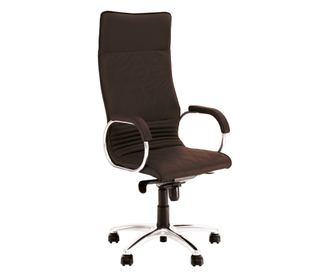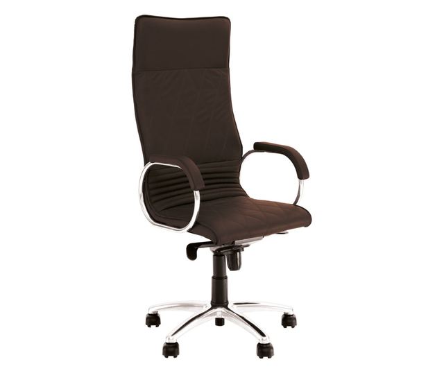 ```Scijentni stolac OVATION je udoban stolac s ergonomskom sjedištem i naslonom, izrađen na osnovi profilirane drvene konstrukcije i obložen ekološkom kožom. Sjedište ima zaobljeni prednji rub. Stolac je opremljen Multiblock mehanizmom koji osigurava slobodno ljuljanje i omogućuje fiksiranje sjedišta i naslona u četiri položaja. Anti-Shock funkcija ima za cilj spriječiti osobu od pada unatrag ili udarca u naslon prilikom otpuštanja mehanizma. Stolac ima metalne ruke obložene drvom i obloženim kožom te sjajnu aluminijsku zvjezdastu bazu.