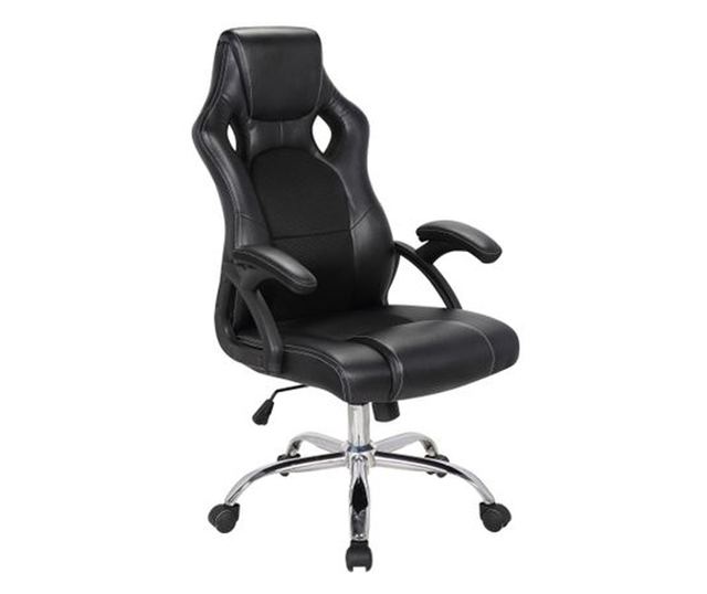 Direktorska stolica MIKOS je robusna stolica, opremljena TILT mehanizmom za balansiranje koji omogućava opuštajući balans, fiksiranje nivoa nagiba sjedala i naslona u određenoj poziciji, kao i podešavanje nivoa napora za balansiranje sjedala i naslona, u zavisnosti od težine osobe. Fiksne ruke stolice su napravljene od polipropilena i obložene ekološkom kožom. Osnova u obliku zvijezde je od kromiranog metala.