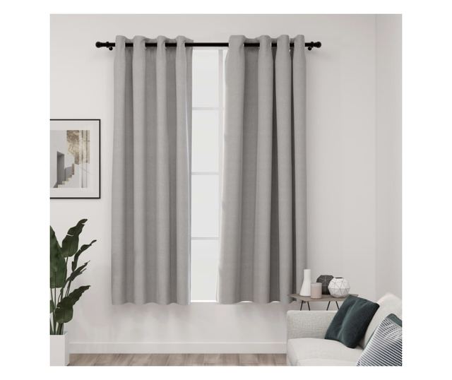 Neprozirne zavjese od imitacije lana s ušicama, 2 kom, sive, 140x175 cm