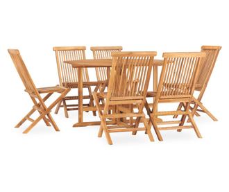 Ovaj komad namještaja od tikovine izrađen je od izdržljivog tvrdog drva koje je obrađeno, sušeno u peći i fino brušeno za vrlo glatki izgled. Tikovina je poznata po svojoj iznimnoj robusnosti i otpornosti na vremenske uvjete, što je čini mnogo prikladnijom za vrtni namještaj od bilo koje druge vrste drva. Tikovina je savršen izbor ako želite kupiti dugotrajan vrtni namještaj. Stol i stolice mogu se sklopiti kako bi se uštedio prostor kada se ne koriste.