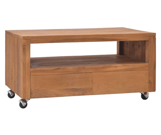 Izrađena od čvrstog tikovog drva, ovaj komad namještaja je obrađen, sušen u pećnici i zatim fino brušen, za vrlo glatki izgled. Tikovina je poznata po svojoj izvanrednoj čvrstoći. To je savršen izbor ako želite kupiti dugotrajni komad namještaja. Ova robusna niska komoda ima velike ladice za praktično skladištenje. Također ima četiri kotača, za iznimnu fleksibilnost i lako prenošenje. Možete je koristiti i kao stolić za kavu.