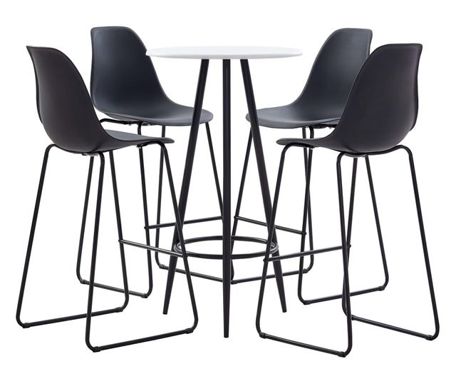Ovaj set barskih stolica idealan je za uživanje u čaši vina u baru, za užinu na šanku ili kao dodatni prostor kada imate goste. Isporuka uključuje jedan barski stol i četiri barske stolice.