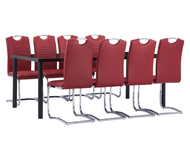 Stol ima glatku površinu od sigurnosnog stakla, lako se čisti samo vlažnom krpom. Metalni okvir s elektrostatikom doprinosi čvrstoj konstrukciji, donoseći izvanstabilnost i trajnost. Stolice su obložene mekom ekološkom kožom i imaju debelu podstavu, kako bi pružile maksimalnu udobnost. Njihov ergonomski dizajn čini blagovaonsku stolicu izuzetno udobnom. Zbog kromiranog čelika, stolice su vrlo izdržljive i stabilne. Osim toga, s drškom na naslonu, stolice za blagovanje su udobne i lako se premještaju. Ovaj set blagovaonskog namještaja lako se sastavlja.