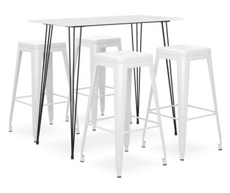 Ploča stola izrađena je od MDF-a koji se lako čisti. Metalni okvir s elektrostatičkim premazom povećava stabilnost i čvrstoću barskog stola. Barske stolice izrađene su od metala s obojenim završetkom, što ih čini snažnim i izdržljivim. Ojačana poprečna šipka ispod sjedala i oslonac za noge povećavaju stabilnost, a ova barska stolica može se slagati za jednostavno skladištenje, što je idealno za ograničen prostor.