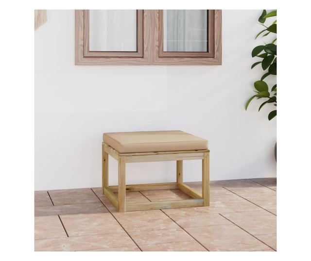 Tabure je izrađen od tretiranog borovog drva, što ga čini izdržljivim, otpornim na vremenske uvjete i ekološkim. Debeli jastučić dodaje savršen komfor. Ovaj tabure ima čvrstu konstrukciju i zahtijeva malo održavanja. Drveni tabure posebno je dizajniran da služi kao dio lounge seta i može se koristiti i kao stolić. Možete ga kombinirati s drugim modularnim segmentima, poput pojedinačne sofe, srednje sofe ili kutne sofe, kako biste stvorili vlastite konfiguracije setova za vrt!