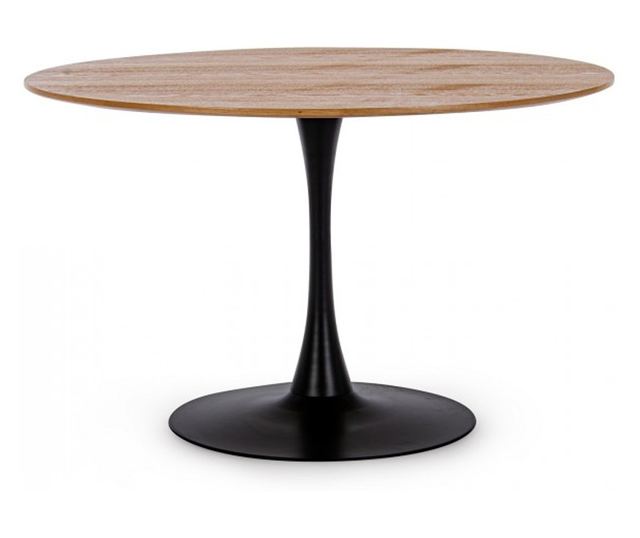 Materijal gornje ploče: Lakirani MDF / Furnir. Materijal nogu: Čelik premazan prahom. Proizvod zahtijeva montažu. Veličina: Promjer 120 cm x Visina 75 cm. Boja gornje ploče: Smeđa. Boja nogu / baze: Crna. Stvorite romantičnu atmosferu inspiriranu Francuskom s našim elegantnim bistro stolom. Bloom okrugli stol za dnevni boravak je moderan dizajnerski komad, izrađen od visokokvalitetnih materijala s vrhunskom završnom obradom. Izrađen od kvalitetnog MDF-a i čelika premazanog prahom, njegove linije odražavaju utjecaje trenutnih trendova u dizajnu predmeta, koji su savršeno prilagođeni prostorima koji odišu bliskošću, toplinom i opuštanjem, a rezultat su besprijekorne kombinacije funkcionalnosti i dizajna.