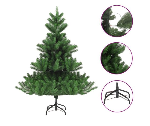 Ovo prekrasno božićno drvce, izrađeno od PVC-a, vrlo je realistično po obliku i izgledu. Sve grane mogu se poravnati, omogućujući vam da prilagodite drvce do savršenog oblika. Uključeni čelični stalak pruža optimalnu stabilnost drvcu. Osim toga, božićno drvce može se koristiti ponovno svake godine, što ga čini vrlo ekonomičnim izborom u usporedbi s prirodnim drvcem.
