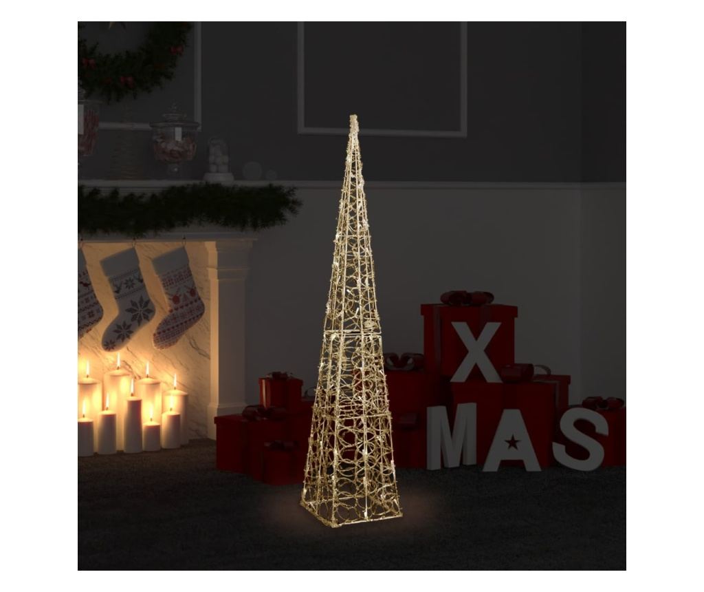 Tijelo ovog dekorativnog svjetlosnog konusa izrađeno je od akrila, što mu daje luksuzan, ledeni, sjajni izgled, osvjetljavajući okolno područje. Opremljen štedljivim LED diodama, pruža svijetlo i snažno osvjetljenje. Ima 8 različitih svjetlosnih efekata: kombinirani način rada, valni način rada, sekvencijalni način rada, polagano sjajni način rada, treperavi način rada, polagano zatamnjenje, bljeskajući način rada i kontinuirano osvjetljenje. Ovaj prekrasni božićni svjetlosni konus i uključena vodootporna kutija za baterije prikladni su za vanjsku ili unutarnju upotrebu.