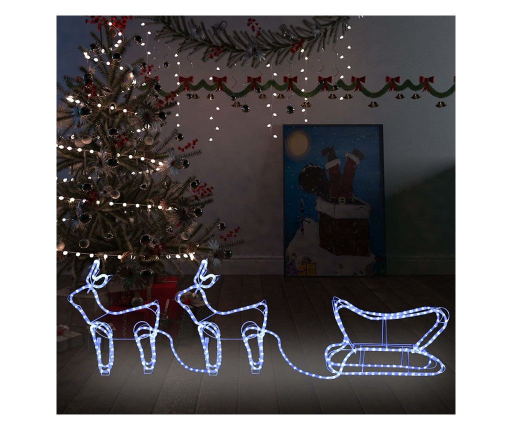 Jeleni i saonice osvijetljeni su LED diodama s hladno bijelim svjetlom za nježan sjaj, što ih čini savršenim ukrasom, kako za unutarnju, tako i za vanjsku upotrebu. Niz LED dioda ima 36 žarulja po metru i ukupno 576 LED dioda, s funkcijom intenzivnog svjetla i uštede energije.