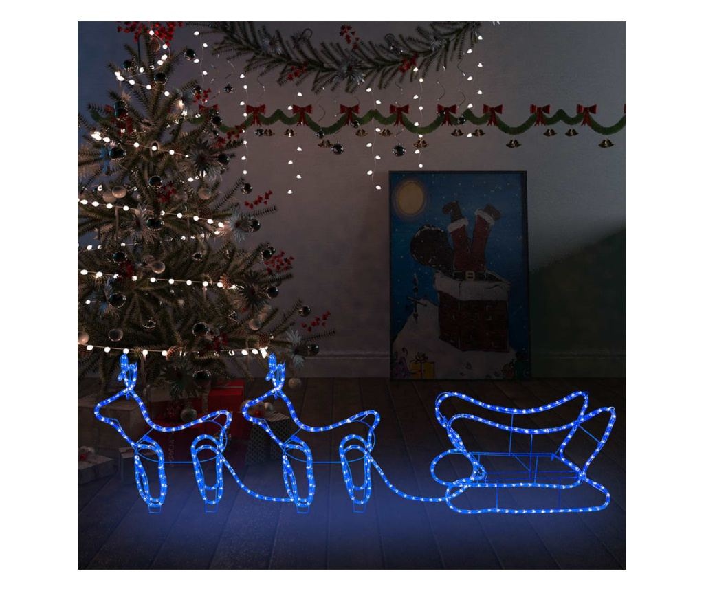 Jelen i saonice osvijetljeni su plavim LED svjetlima za nježan sjaj, što ih čini savršenom dekoracijom kako za unutarnju tako i za vanjsku upotrebu. Niz LED dioda ima 36 žarulja po metru i ukupno 576 LED dioda, sa svijetlom i funkcijom uštede energije.