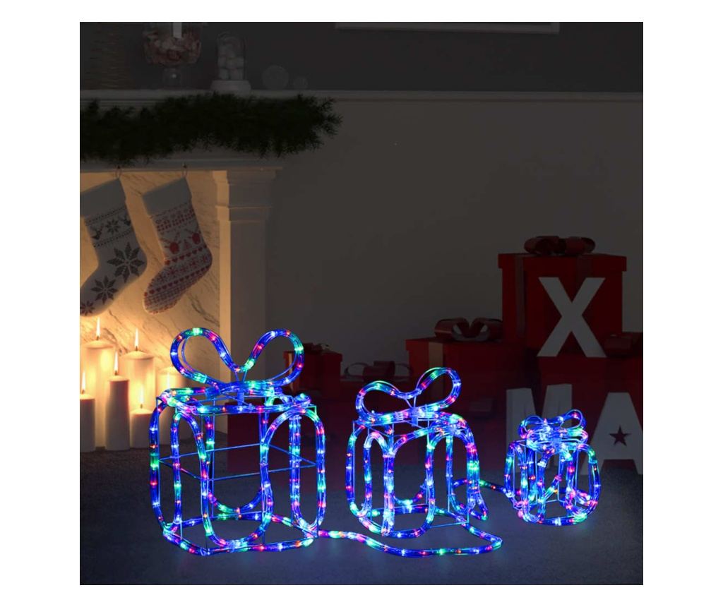 Ove 3D poklon kutije imaju višebojne LED diode koje emitiraju blagi sjaj, idealne za unutarnju i vanjsku upotrebu.