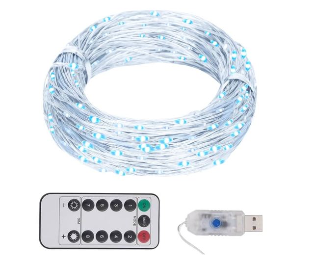 Niz svjetala opremljen je sa 150 LED dioda, stvarajući hladno bijeli svjetlosni dekor. Ima 8 različitih svjetlosnih efekata: kombinirani način, valovi, sekvencijalni način, polagano sjajenje, treperenje, polagano zatamnjenje, bljeskanje i kontinuirano osvjetljenje. Zahvaljujući priloženom daljinskom upravljaču, lako možete upravljati svjetlima. Niz svjetala s bakrenom žicom može se lako saviti u bilo koji oblik koji želite. To je izvrstan dekorativni dodatak za osvjetljavanje unutarnjeg ili vanjskog prostora, kao što su vrtovi, ograda, vrata, božićna drvca itd.