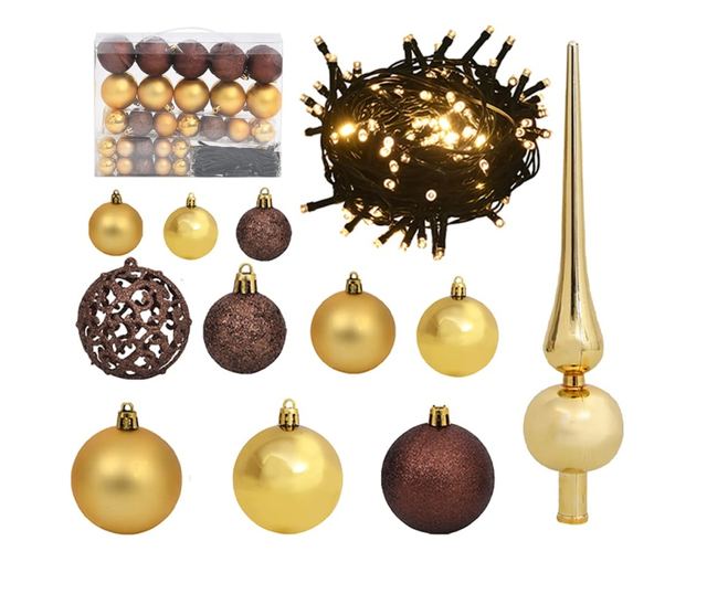 Set kuglica za Božić s vrhom i 150 LED svjetala 61 komad zlatno & brončano