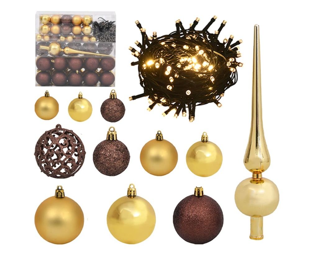 Ove sjajne božićne kuglice dostupne su u tri različite veličine i ukrasit će vaše drvce svojim privlačnim dizajnom. Set sadrži 300 LED svjetala, energetski učinkovitih i izdržljivih. Lijepo svijetle i stvaraju čarobnu blagdansku atmosferu, a dizajnirane su s 8 različitih svjetlosnih efekata: kombinacija svih efekata, polagano svjetlucanje, treperenje / bljeskanje, u valovima, trčanje / protok vode, sekvencijalno, stalno i polagano blijedjenje. Sjajne kuglice izgledaju kao pravo staklo, ali zapravo su izrađene od plastike, tako da se ne morate brinuti da će se razbiti. Ove kuglice su lagane, tako da čak i vaša djeca mogu pomoći u ukrašavanju božićnog drvca. Također, set sadrži dodatni vrh za blagdansko ukrašavanje.