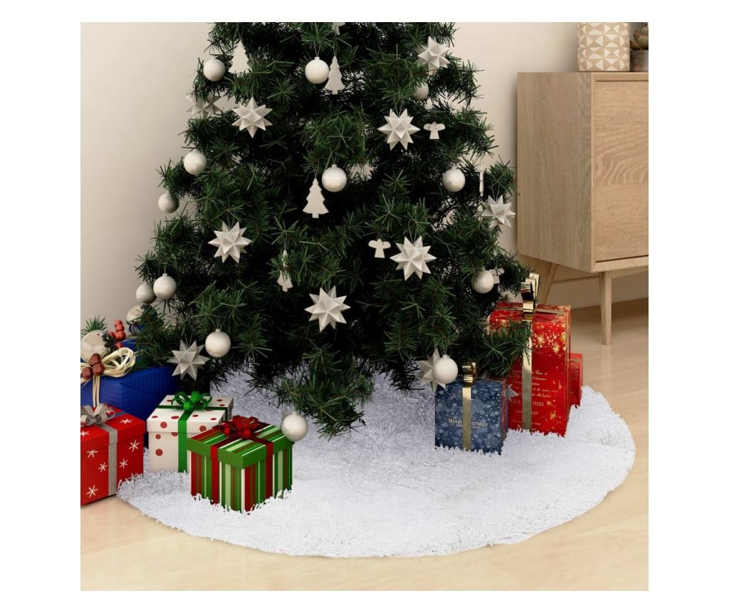 Ova baza za božićno drvce izrađena je od netkanog tekstila na stražnjoj strani i debele umjetne krzna na prednjoj strani, glatka i udobna, dodajući topao dodir vašem domu. Suknja za drvce elegantno stoji na bazi vašeg božićnog drvca, čineći ga savršenim mjestom za postavljanje i otvaranje darova. Ovaj ukras za drvce također ima dugotrajnu izdržljivost, tako da ga možete koristiti kao kućni tepih ili ga sačuvati za sljedeću godinu.