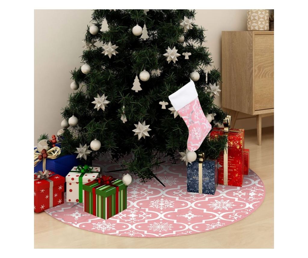 Ova mekana i topla podloga za drvce ima uzorke snijega koji odgovaraju blagdanskoj atmosferi. Također dolazi s odgovarajućom božićnom čarapom koja se može napuniti slatkišima, poklonima itd. Božićni ukras se lako može sklopiti kada se ne koristi, kako bi se koristio sljedeće godine.