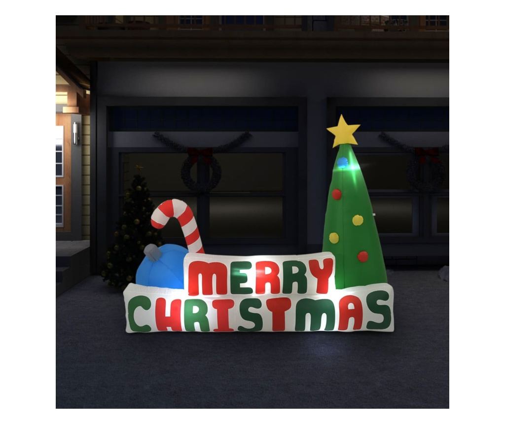 Ovo je zasigurno impresivan dodatak vašim božićnim ukrasima. Izrađeno od tekstilnog materijala, ovo napuhavajuće drvce je lagano i otporno na vremenske uvjete. Blagdanski ukras se sam napuhava u nekoliko sekundi zahvaljujući integriranom ventilatoru. Ukras je također lako pohraniti za sljedeću sezonu praznika nakon ispuhivanja. Opremljen LED svjetlima za emitiranje jake svjetlosti, ovaj božićni ukras je vrlo energetski učinkovit. Osim toga, klinovi za tlo i užad uključeni su u isporuku za pričvršćivanje drvca.