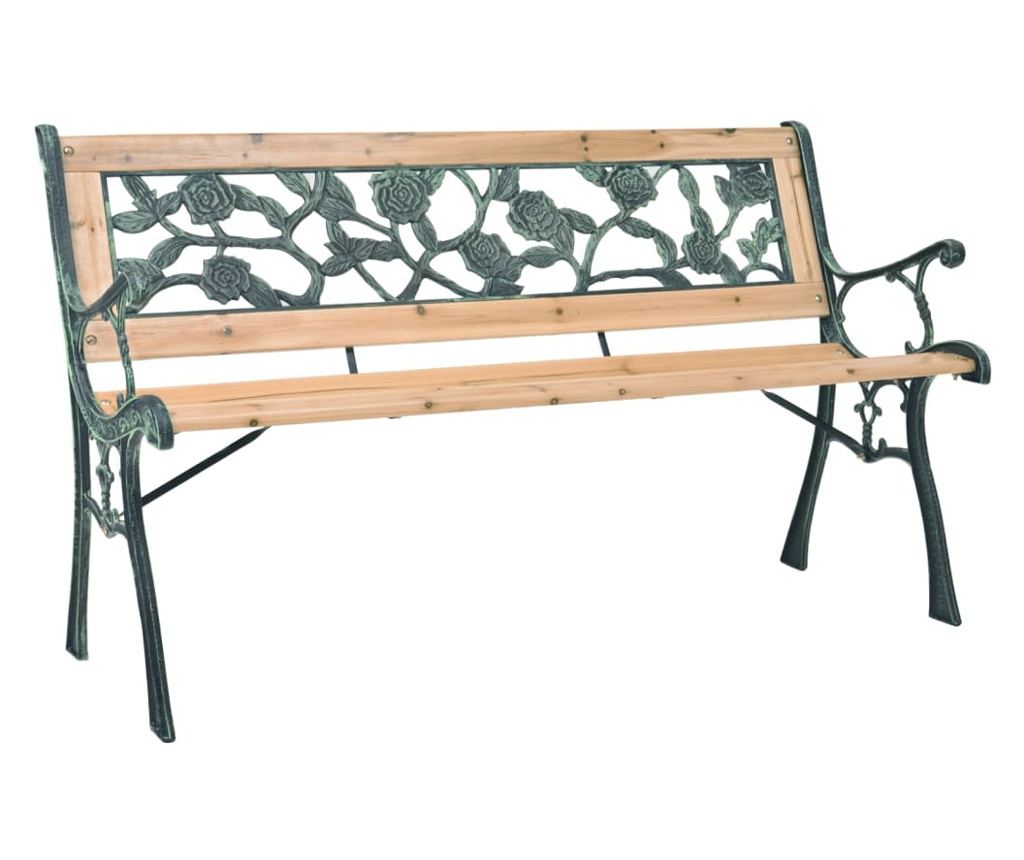 Ova ukrasna vrtna klupa, s nostalgičnim dizajnom, ima okvir od drva i visokokvalitetnog kovanog željeza. S dekorativnim naslonom od PVC-a, zasigurno će privući sve poglede i biti savršen izbor za vaš vrt ili terasu. Također je idealna za postavljanje ispred vaše kuće.