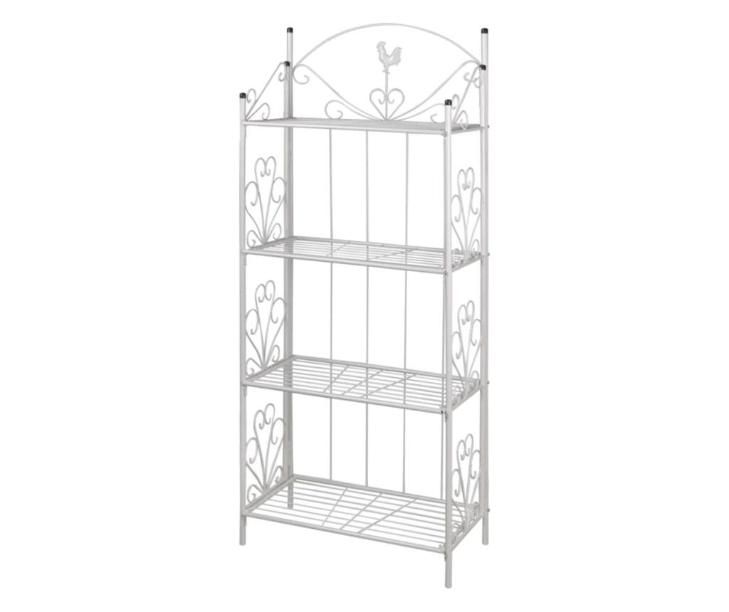 Stalak ima 4 police i visinu od 153 cm. Budući da je izrađen od čelika obloženog prahom, stalak je otporan na hrđu i ima dug vijek trajanja.