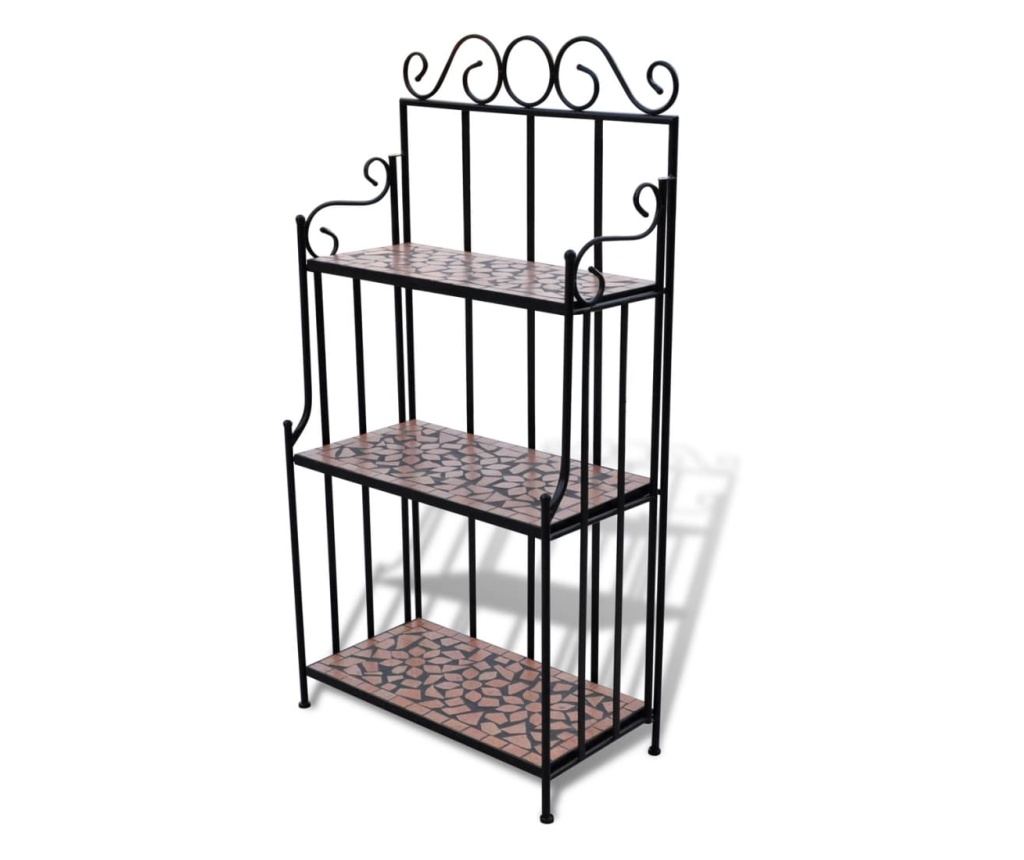 Ovaj stalak za biljke ima prekrasno izrađen metalni okvir i 3 keramičke police s mozaikom. Sigurno će privući poglede bilo da je u vrtu ili na balkonu.