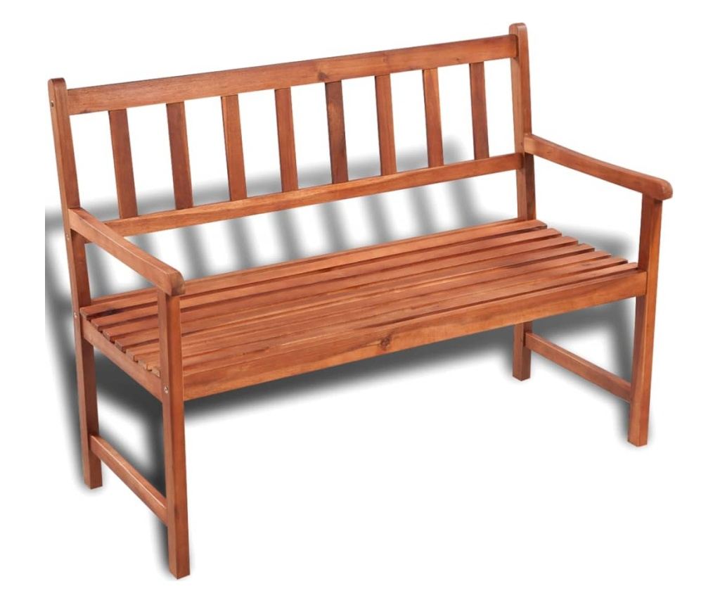 Premazana laganim slojem ulja, ova klupa izrađena je od tvrdog drva bagrema, koje se odlikuje izvrsnom otpornošću na vremenske uvjete. Stoga je ova klupa izuzetno prikladna za vanjsku upotrebu. Letvice na sjedištu i naslonu pružaju velikodušnu potporu i optimalnu udobnost. Dvije nasloni za ruke pružaju mjesto za odmor vaših ruku. Opustite se na ovoj prekrasnoj klupi!