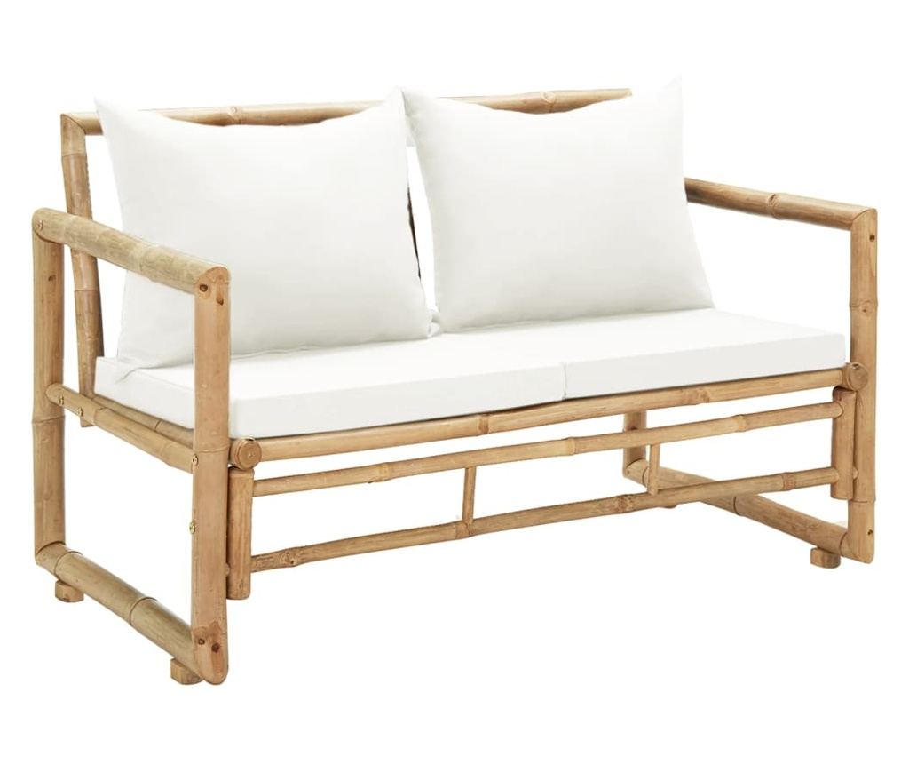 Ova izdržljiva klupa je udobna i idealna za čitanje ili opuštanje. Izrađena je od visokokvalitetnog bambusa, otpornog na vremenske uvjete i vodootpornog. Lako se čisti vlažnom krpom. Debeli i odvojivi jastuci za sjedenje i naslon dodaju dodatnu udobnost stolici. Autentična boja bambusa dodat će tropski šarm dekoru vašeg vanjskog prostora.