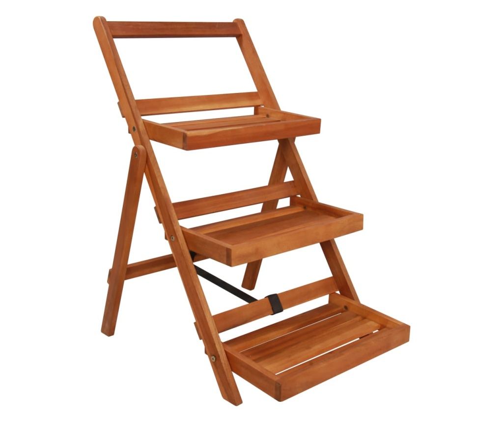 Ovaj stalak za cvijeće izrađen je od masivnog bagremovog drva, kojem je dan prirodni uljni završetak za profinjen izgled. Ovaj stalak za biljke ima 3 razine, pružajući udoban prostor za izlaganje vaših prekrasnih biljaka. Osim toga, ovaj stalak za biljke može se sklopiti kako bi se uštedio prostor kada se ne koristi.