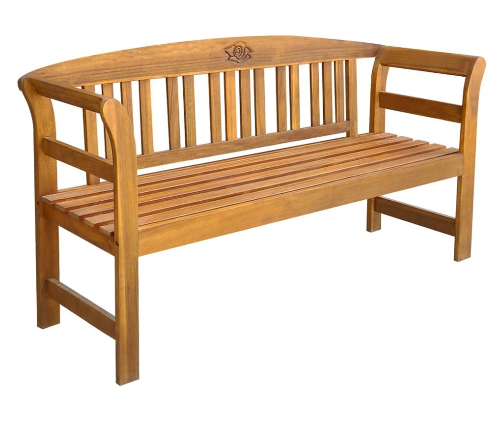 S ružom ugraviranom u središtu naslona, ova klupa predstavlja idealan dekorativni komad za travnjak ili vrt. Klupa je izrađena od masivnog bagremovog drva, što je čini robusnom i izdržljivom te pogodnom za vanjsku upotrebu. Naslon i rukohvati dodaju dodatnu udobnost sjedenju. Zakrivljeni rukohvati daju klupi elegantan izgled. Uživajte u odmoru na ovoj prekrasnoj vrtnoj klupi!