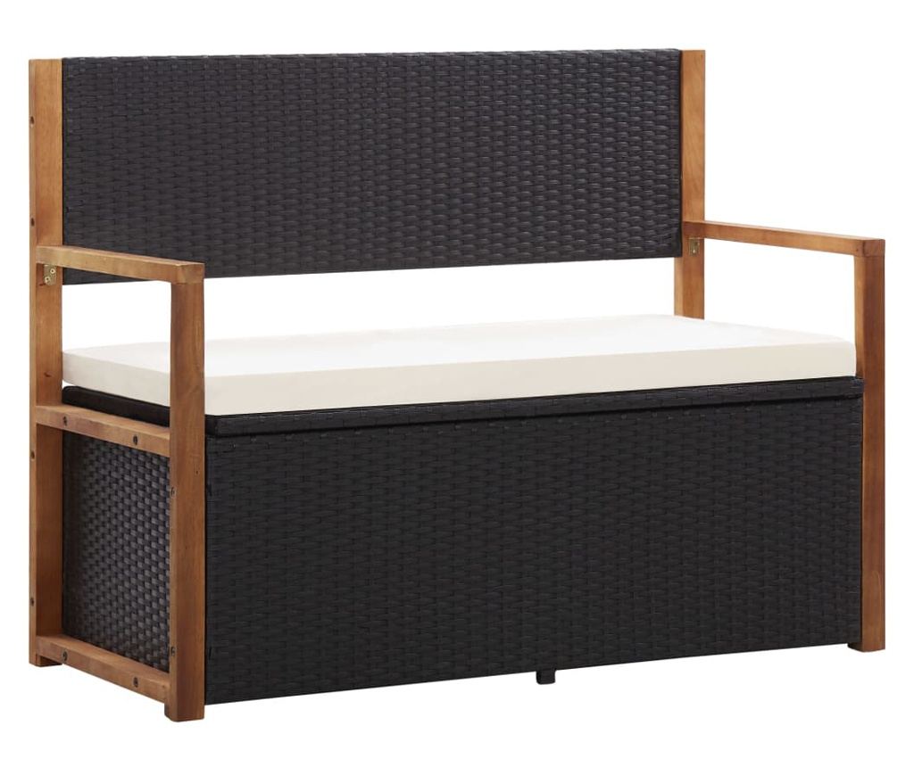 Ova vrtna klupa izrađena je od poliratana, s rukohvatima i naslonom od masivnog bagremovog drva, što je čini izdržljivom, otpornom na hrđu i vremenske uvjete te osigurava dugotrajnu upotrebu. Klupa je dizajnirana s velikim prostorom za pohranu unutra, kako bi vam omogućila da držite organizirane i pri ruci razne predmete. Osim toga, debeli i odvojivi jastuk za sjedenje vrlo je udoban.