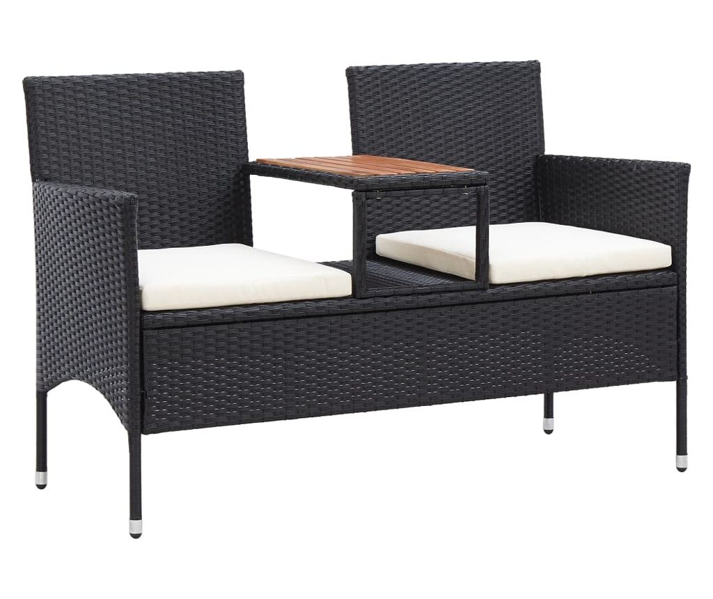 Set klupe izrađen je od PE ratana otpornog na vremenske uvjete i vodu, lako se čisti, otporan je na habanje i pogodan za svakodnevnu upotrebu. Klupa ima čvrsti okvir od čelika s elektrostatičkim premazom. Također je lagana, što ovu vanjsku klupu čini jednostavnom za premještanje. Dva sjedala povezana su čajnim stolićem. Tako možete praktično držati svoja omiljena pića ili knjige pri ruci. Debeli i odvojivi jastuci za sjedenje vrlo su udobni. Navlake od poliestera koje se lako čiste, s skrivenim patentnim zatvaračima, mogu se ukloniti i oprati.