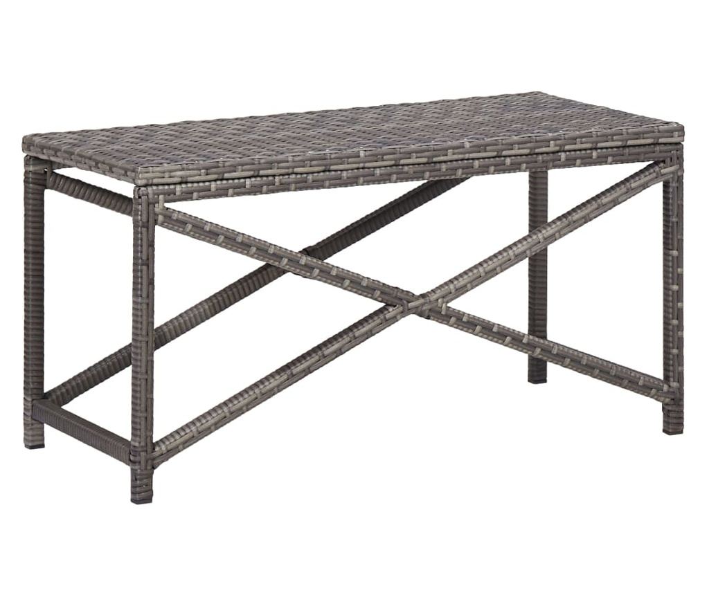 Zahvaljujući vodootpornom poliratanu, ova klupa je jednostavna za čišćenje, otporna na habanje i pogodna za svakodnevnu vanjsku upotrebu. Ova vanjska klupa ima čvrst okvir od čelika obojenog elektrostatskim premazom, što je čini vrlo stabilnom i izdržljivom. Ova vrtna klupa je jednostavna za sastavljanje.