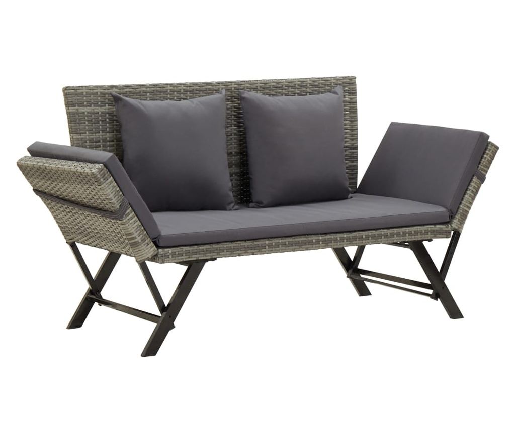 Izrađena od izdržljivog PE ratana, ova vrtna klupa je jednostavna za čišćenje, otporna na habanje i prikladna za svakodnevnu upotrebu. Klupa ima čvrst okvir od čelika obloženog prahom, što je čini posebno stabilnom i izdržljivom. Može se brzo i jednostavno pretvoriti iz klupe u ležaljku i natrag, zahvaljujući podesivim bočnim stranama. Debelo podstavljeni jastuk pružit će optimalnu udobnost i dodatnu potporu. Zahvaljujući dizajnu s patentnim zatvaračem, navlaka jastuka se može skinuti radi lakšeg pranja.