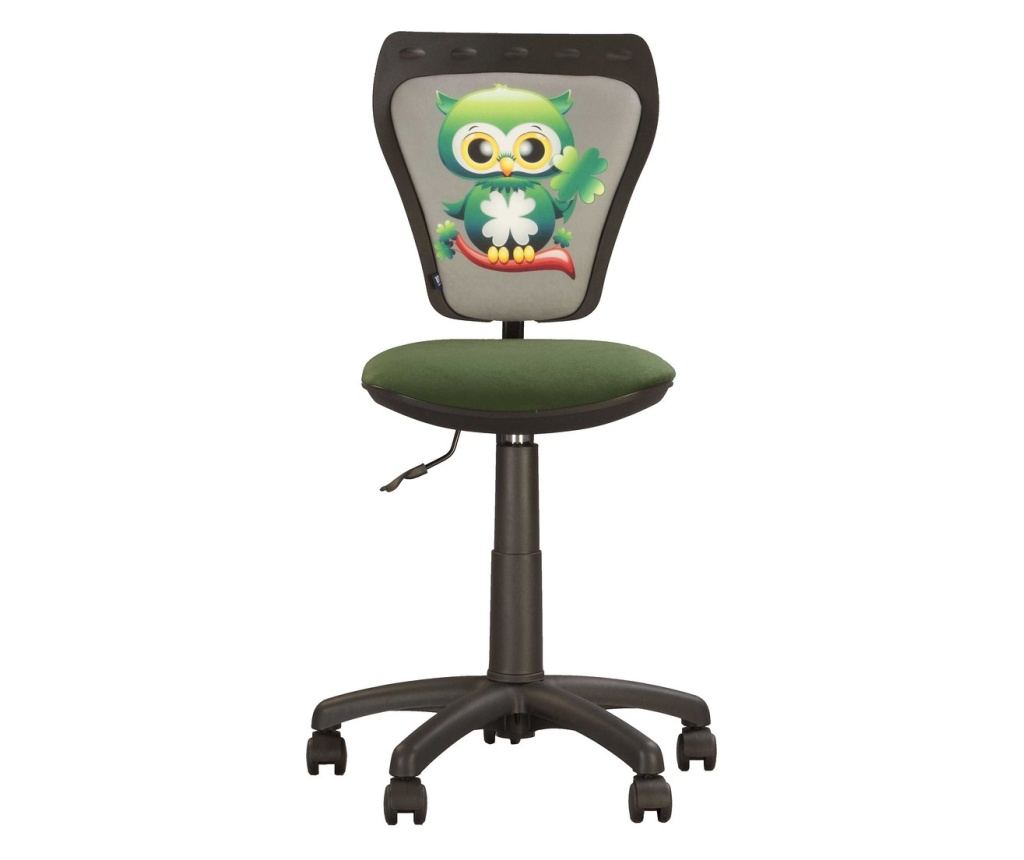 "Stolica KIDS je udobna, rotirajuća stolica namijenjena djeci. Stolica ima sjedište i naslon presvučene tkaninom fantasy s uzorkom. Visina stolice je podesiva zahvaljujući plinskom mehanizmu. Visina naslona i razina dubine sjedišta mogu se vrlo jednostavno podesiti pomoću vijaka. Stolica ima metalnu bazu u obliku zvijezde u plastičnom kućištu crne boje.