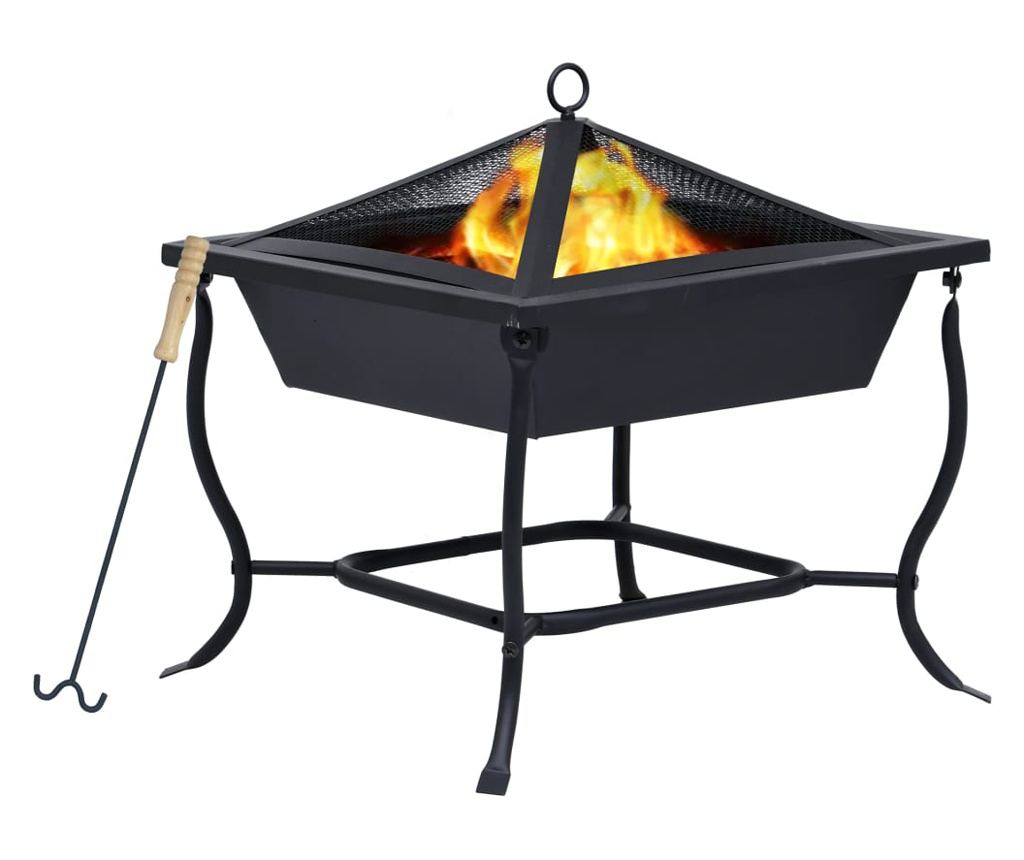 Izrađena od čelika obojenog elektrostatskim premazom, posuda za vatru izvrsna je za apsorpciju i zračenje topline. Može se koristiti za spaljivanje suhog drva, trupaca ili ugljena. Zahvaljujući čvrstim čeličnim nogama, ostat će stabilna u raznim vanjskim okruženjima. Posuda za vatru otporna je na lagane vremenske uvjete i hrđu, za dugotrajnu vanjsku upotrebu. Osim toga, opremljena je sigurnosnom mrežom kako bi se spriječile opekline od iskri i drvenim vatralom za poticanje vatre i uklanjanje sigurnosne mreže. Ako joj dodate rešetku, ova vatra može se koristiti i kao roštilj.