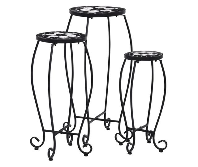Mozaikni stolovi, 3 kom., crno-bijeli, keramika