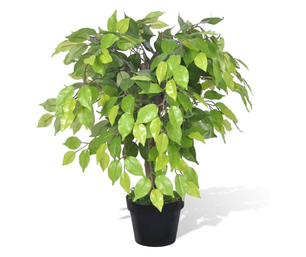 Ova umjetna fikus biljka prirodnog izgleda visoka je 60 cm i nikada se neće osušiti. Zbog svojih malih dimenzija, može se smjestiti gotovo bilo gdje, a da ne zauzima previše prostora. Bogato zeleno lišće od 420 listova ima neujednačenu boju, čineći biljku stvarnijom i ljepšom.