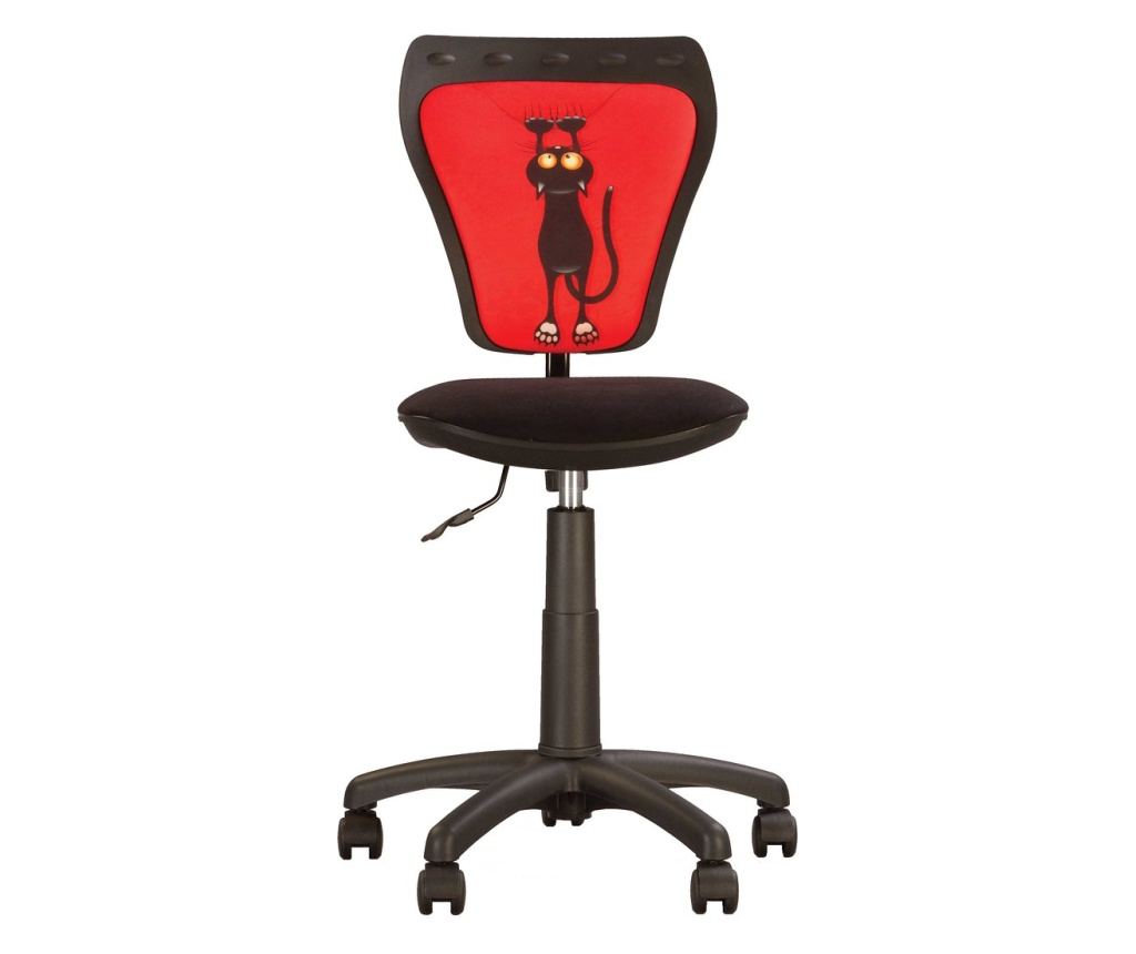 "Stolica KIDS je udobna, rotirajuća stolica namijenjena djeci. Stolica ima sjedište i naslon presvučene tkaninom fantasy s uzorkom. Visina stolice je podesiva zahvaljujući plinskom mehanizmu. Visina naslona i razina dubine sjedišta mogu se vrlo jednostavno podesiti pomoću vijaka. Stolica ima metalnu bazu u obliku zvijezde u plastičnom kućištu crne boje.