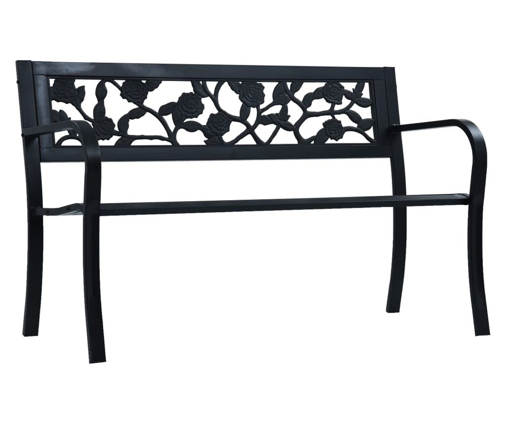 Izrađena od čelika obojenog elektrostatskim premazom, klupa je otporna na vremenske uvjete i vrlo izdržljiva. Dekorativni plastični naslon s uzorkom ruža dodaje klasičan naglasak svakom vrtu ili dvorištu. Također, klupa će biti prekrasan dekorativni element i za vašu verandu.