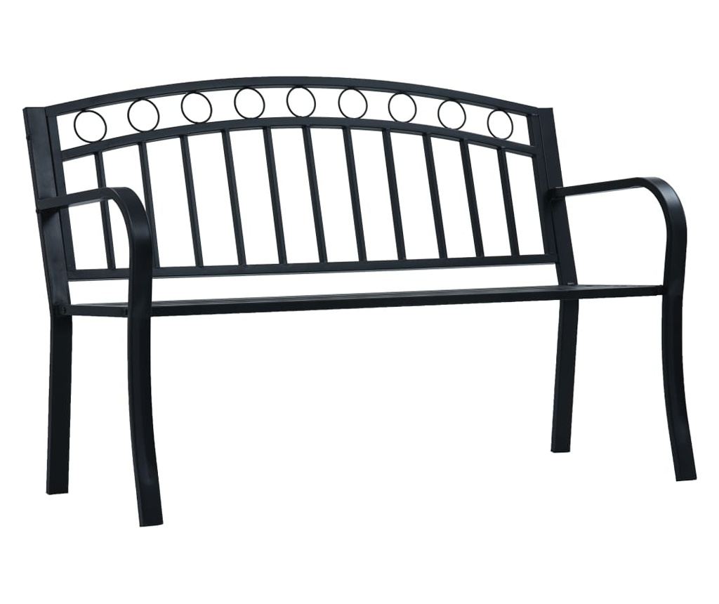 Izrađena od visokokvalitetnog čelika, ova vrtna klupa otporna je na vremenske uvjete i vrlo izdržljiva. Dvije zakrivljene metalne ruke idealno su mjesto za opuštanje umornih ruku. Sigurno ćete uživati u vremenu provedenom na ovoj prekrasnoj klupi!