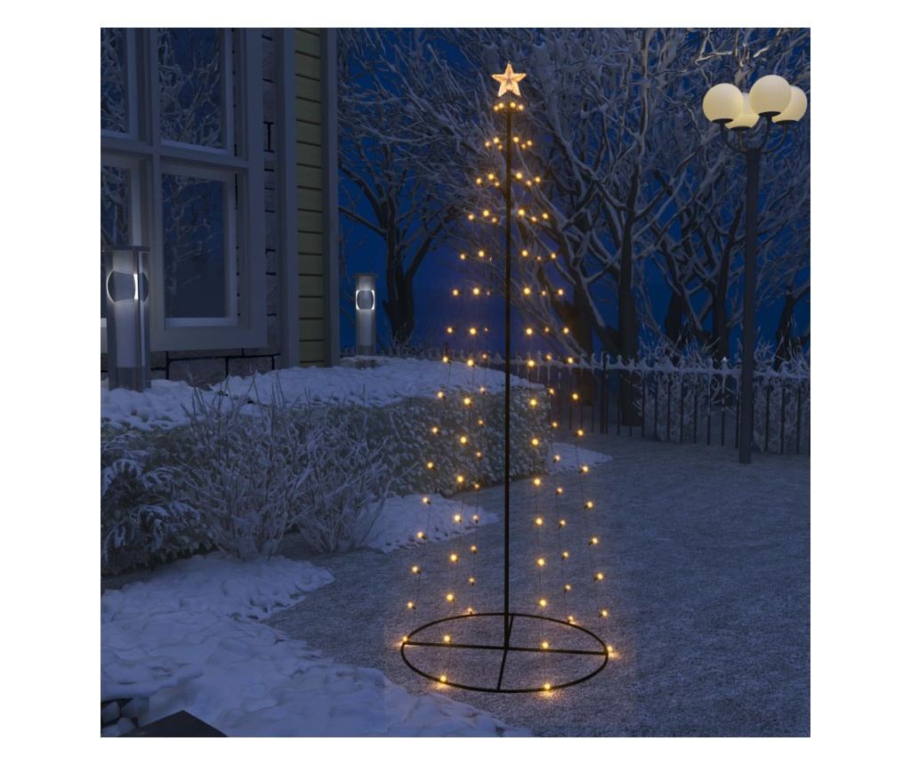 Ova prekrasna božićna dekoracija otporna je na vodu i prikladna za unutarnju i vanjsku upotrebu. Svjetla se sastoje od 100 LED dioda i svjetla u obliku zvijezde na vrhu, koje emitira toplo bijelo svjetlo. Uključena okrugla baza može se preklopiti na pola. Ovo samostojeće konusno drvce namijenjeno je da bude pravi privlačan element, osobito kad padne mrak, a istovremeno služi kao ugodan izvor ambijentalnog svjetla. Drvce se može lako i sigurno pričvrstiti na tlo s uključenim materijalima za montažu.