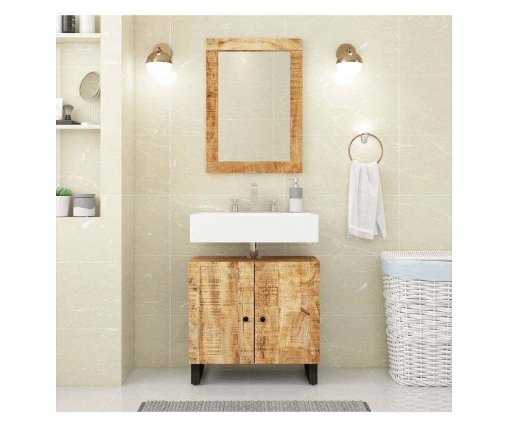 - Puno drvo manga: Ovaj ormarić izrađen je od punog drva manga u kombinaciji s obrađenim drvom. Puno drvo manga je tropsko tvrdo drvo koje je snažno i izdržljivo, od kojeg se izrađuje robusni namještaj. Prekrasni godovi drva čine svaki komad namještaja malo drugačijim od ostalih.